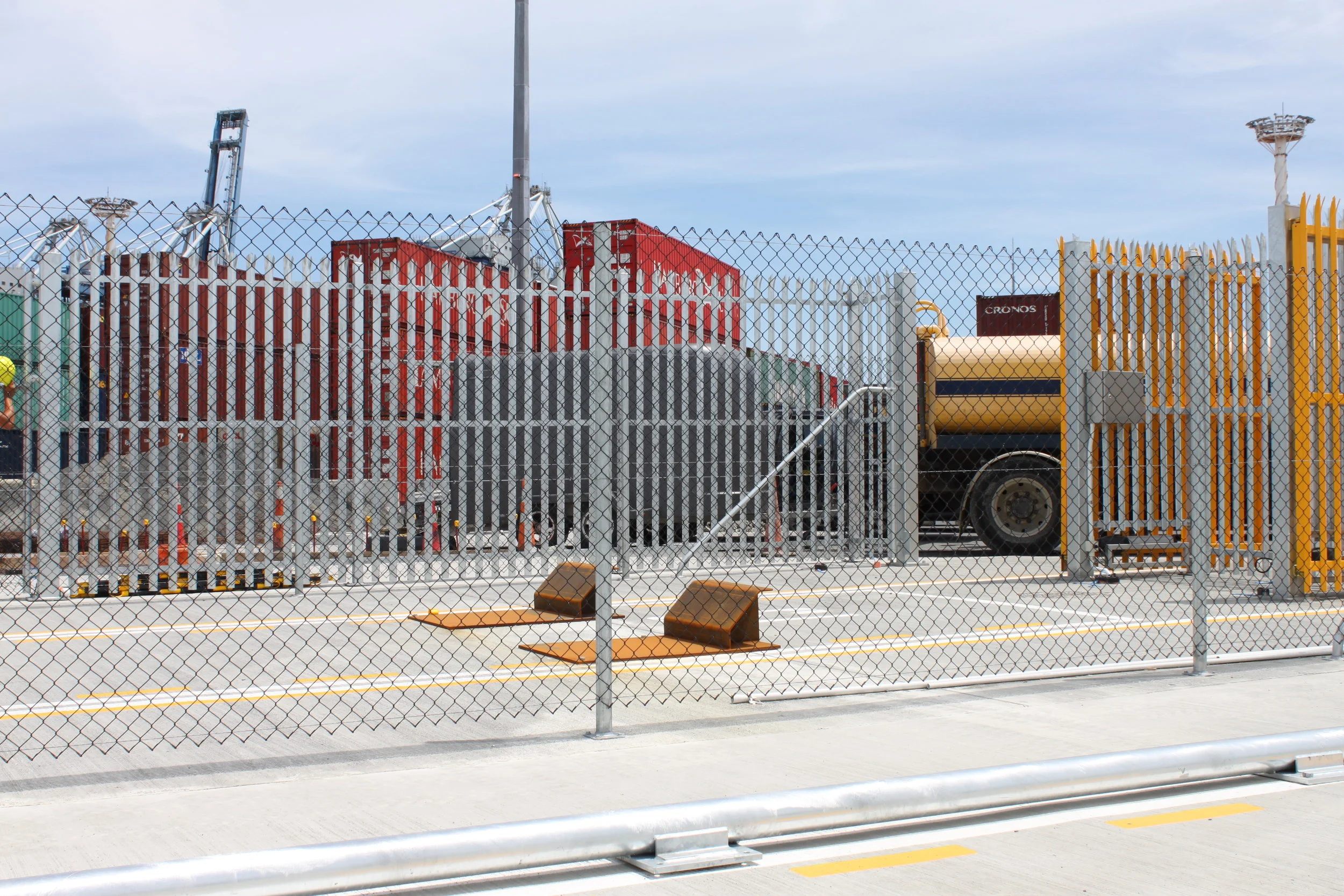 Harbours and ports need to balance the need for high volume traffic flows with high levels of staff and public safety, and high security against terrorist or criminal attack. Done well, the design can meet all these competing criteria and improve productivity of the operations. This needs the full skill set of an integrated perimeter high security specialist like Hampden. ArmorFence Palisade and 358 mesh protect the secure areas of the port, while long runs of chainlink are good for managing internal divisions. Automated barrier arms and tire spikes are used to manage traffic flow without slowing the operations.